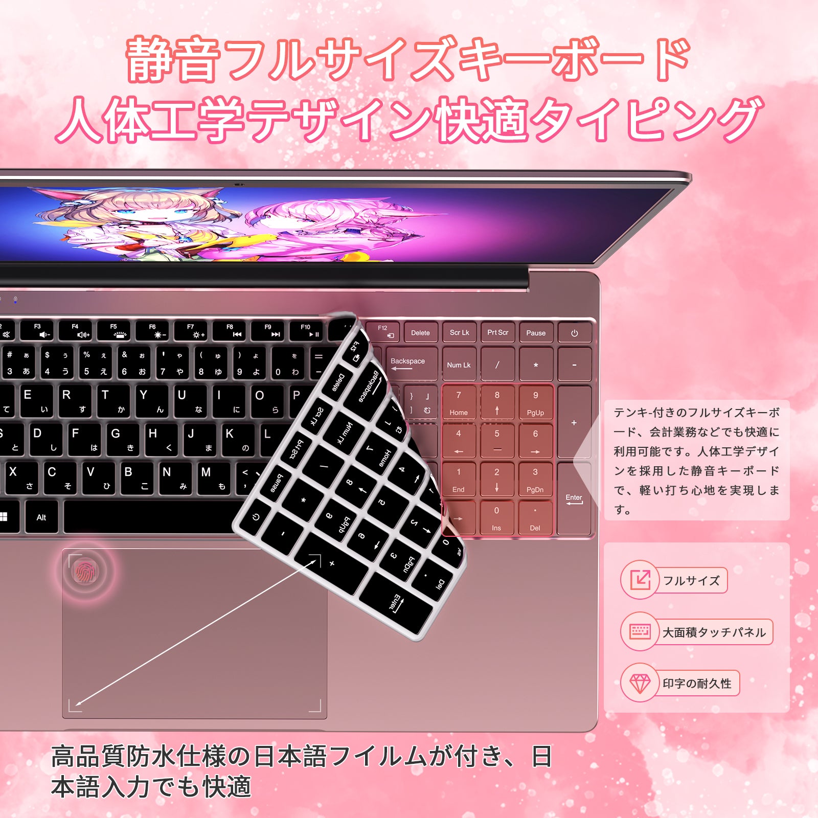 ノートパソコン MS 2024搭載 有線マウス付き「Twin Lake N150 15.6インチ 4コア/4スレッド 8000mAh大容量バッテリー DDR4 16GB 1TB M.2 SSD 最大周波数3.60GHz 軽量 ノートPC」 Win11 Pro/指紋認証/BT5/Wi-Fi5/USB3.0*2/日本語キーボードカバー付き ノートPC ピンク